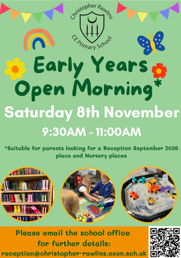 Opening Morning Saturday 8th November. Suitable for parents looking for a September 2026 place for Reception or Nursery. Please contact the School Office to book your place.